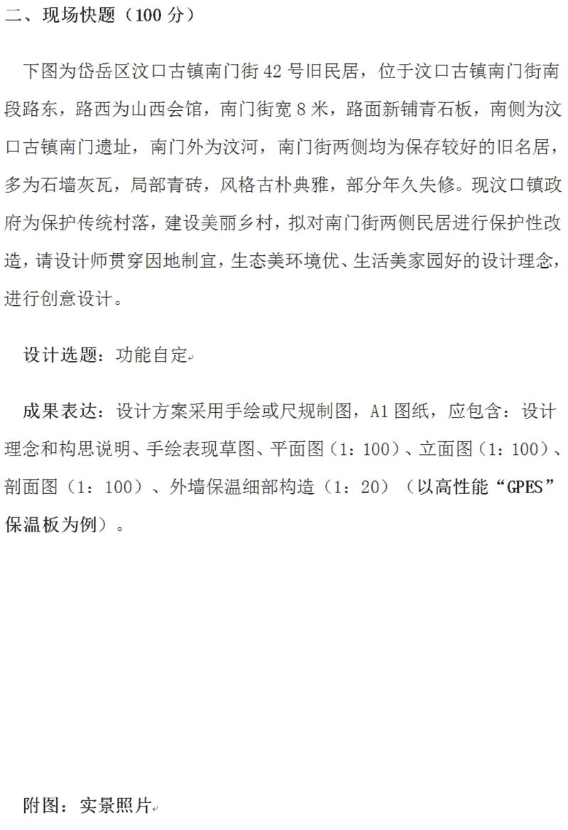 現場快題:建筑創(chuàng)意設計技能競賽考試題